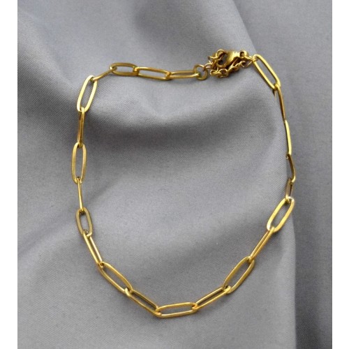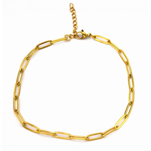 • Ατσάλινο βραχιόλι ποδιού με οβάλ κρίκους πλακέ 12x4x1x0.7mm μάκρος 24cm επίχρυση
