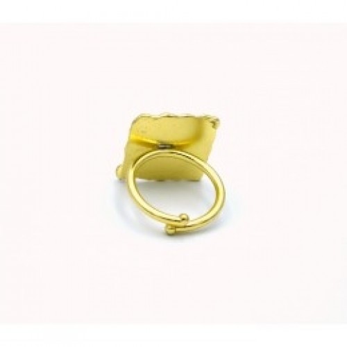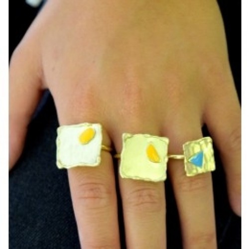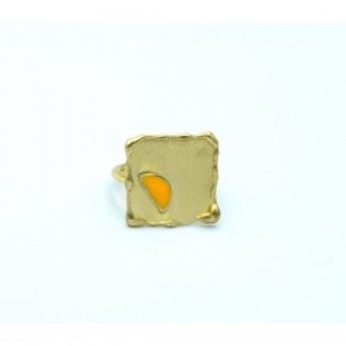 Χειροποίητο δαχτυλίδι τετράγωνο από ορείχαλκο επιχρυσωμένο με κίτρινο μισοφέγγαρο σμάλτο
