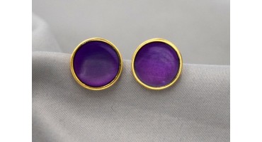 Έτοιμα σκουλαρίκια μεγάλα 15mm σε επίχρυσο (24Κ) με βιολετί σμάλτο-ανά ζευγάρι