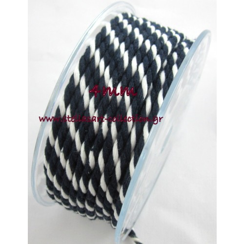 Στριφτό βαμβακερό κορδόνι 4mm σε δίχρωμο 2 κλώνοι σκούρο μπλε και 1 κλωνο λευκό χρώμα τιμή ανα μέτρο