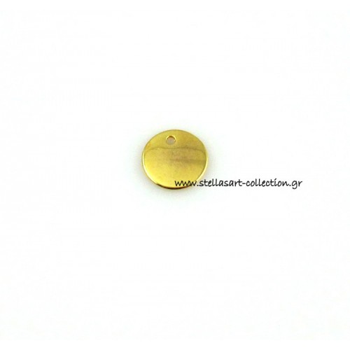Mεταλλικό λείο μοτίφ,στρογγυλό,μικρό 12mm με τρυπα στην πάνω μεριά σε επίχρυσο
