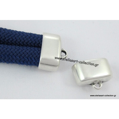 Mεταλλικοί ακροδέκτες με λεία επιφάνεια οβάλ 23 x 17 mm σε ΑΣΗΜΙ ΑΝΤΙΚΕ κατάλληλο για δυο στρογγυλά κορδόνια 10 mm