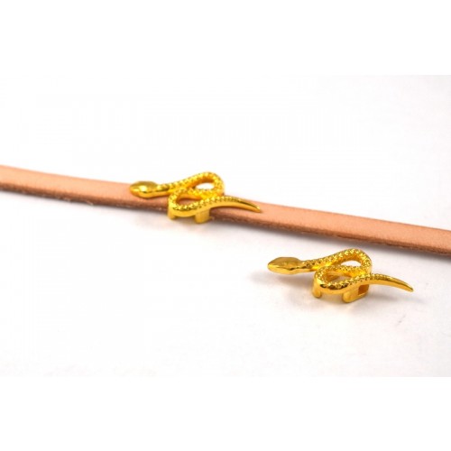 Μεταλλικό ,περαστό μοτίφ φίδι για πλακέ δέρμα 5x2,5mm σε επίχρυσο-ανα τεμάχιο