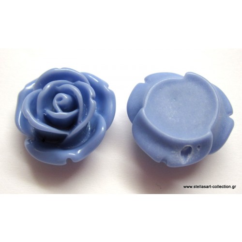 Μεγάλο τριαντάφυλλο απο ρητίνη 25mm με διαμπερή τρυπα και φλατ απο κάτω σε γαλάζιο χρωμα καταλληλο και για κολιέ