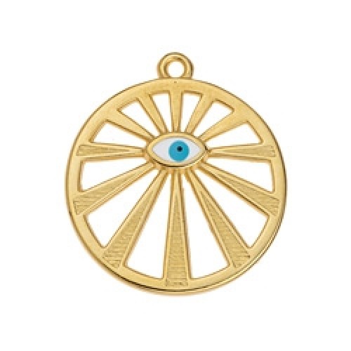 - Κρεμαστό στρογγυλό μοτίφ με ακτίνες & καστόνι navette σε επίχρυσο (24Κ) με λευκό μάτι